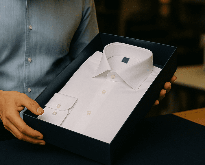 Ogni camicia nasce per esprimere il tuo stile unico. Dal tessuto al bottone, dal colletto al polsino, ogni dettaglio viene scelto da te, per creare un capo che parla di te e ti rappresenta in ogni occasione.