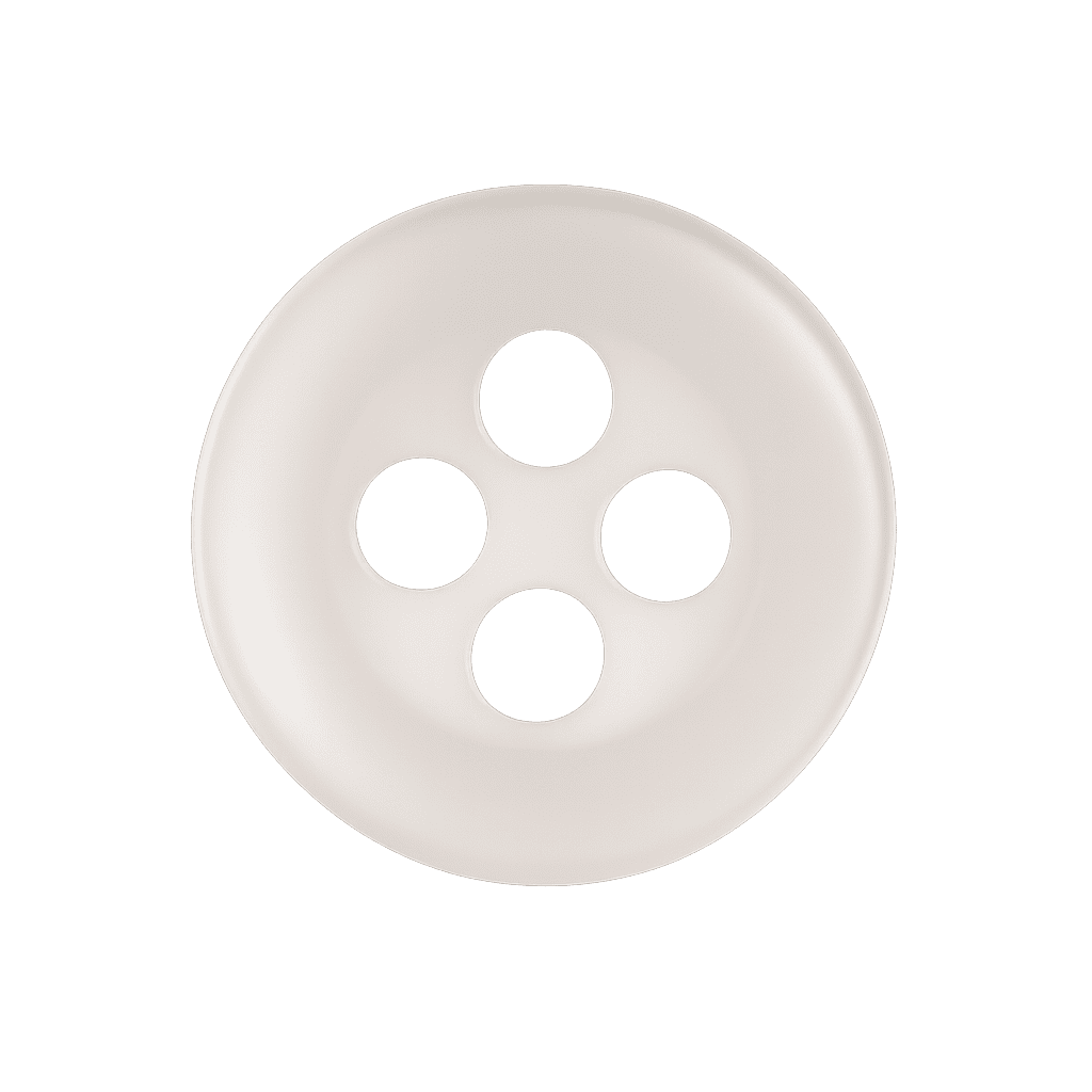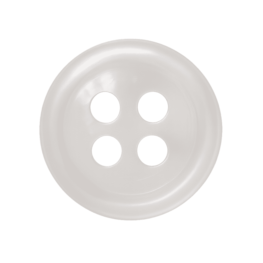 Bottone in resina premium bianca, luminoso e raffinato, perfetto per camicie sartoriali eleganti e resistenti.