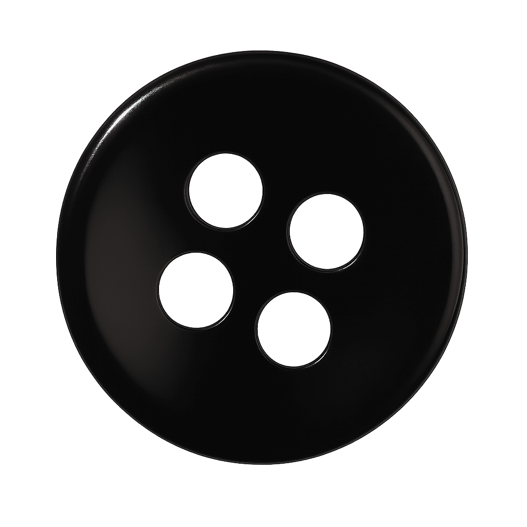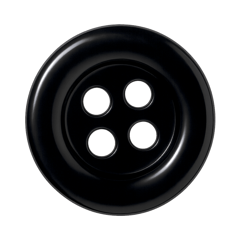 Bottone in resina premium nera, lucente e raffinato, ideale per camicie sartoriali di alta classe.