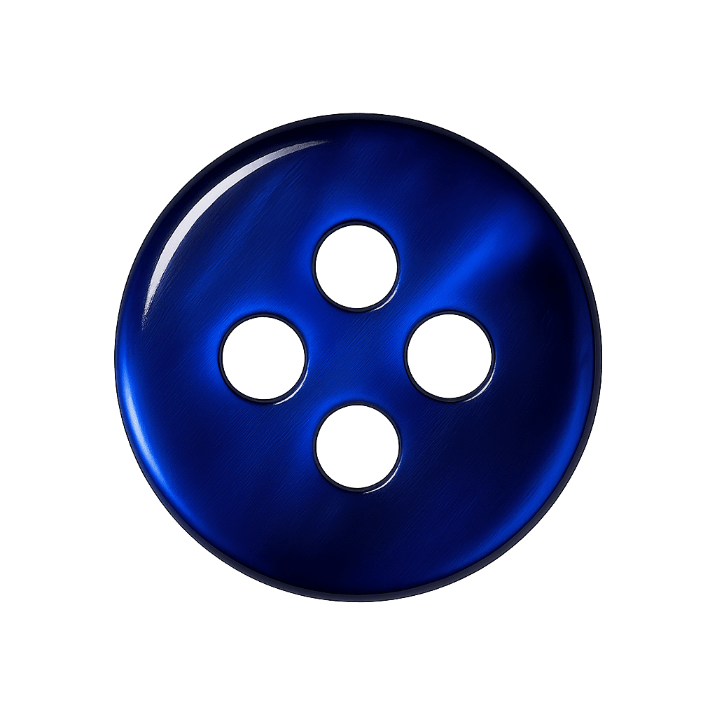 Bottone in resina premium blu notte, lucente e raffinato, ideale per camicie sartoriali di classe.
