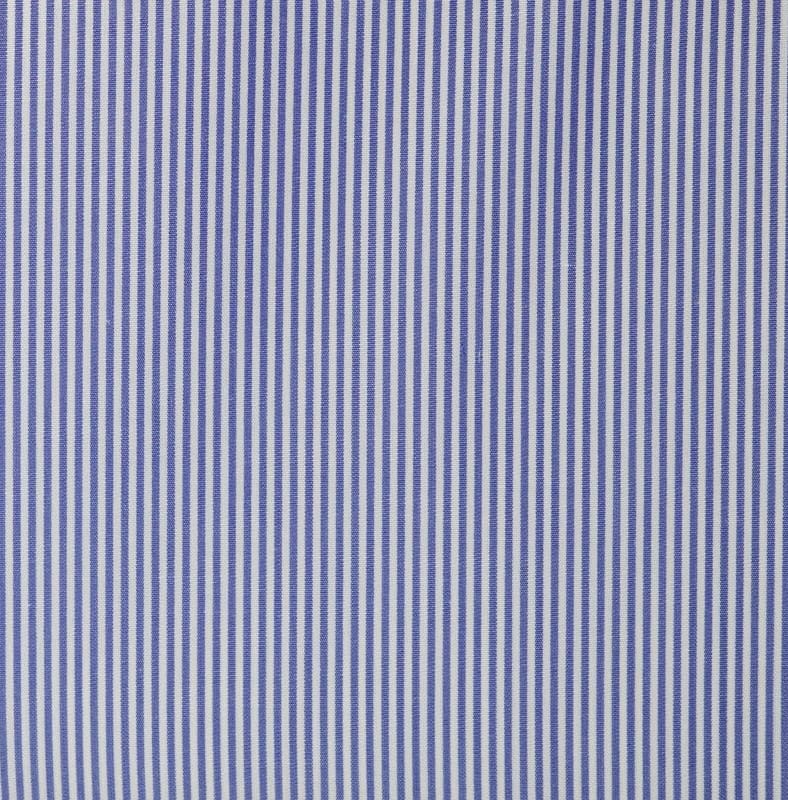 Cotone egiziano di altissima qualità, a righe blu e bianco, luminoso, morbido e resistente. Perfetto per look raffinati.